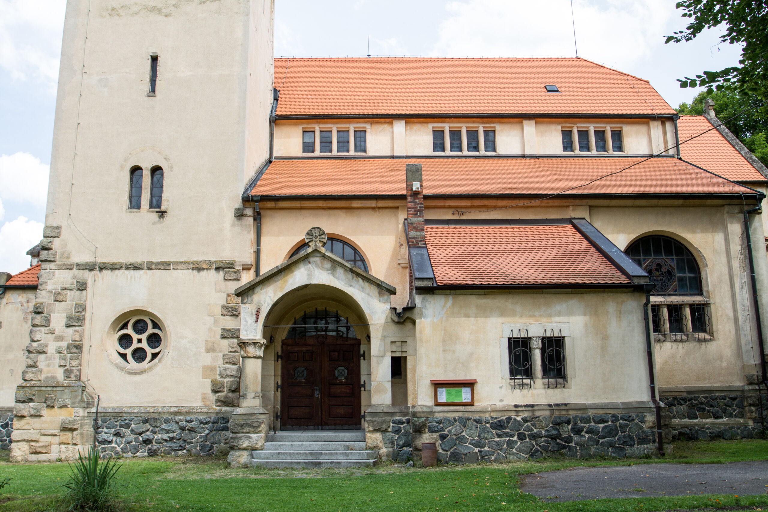 Kostel sv. Jana Nepomuckého byl vystavěn v letech 1911-13 a vysvěcen v roce 1915. Na první pohled kolemjdoucí upoutá svým neotřelým architektonickým řešením. Tu na vás vykoukne neorománský sloh, tu secese či renesance a aby toho nebylo málo i trocha severského křesťanského umění. Jedná se trojlodní baziliku zakončenou třemi apsidami. Při pohledu dovnitř vidíme oltář umístěný v konše, jejíž stěny zdobí nástěnné malby, tak jako větší část interiéru kostela.