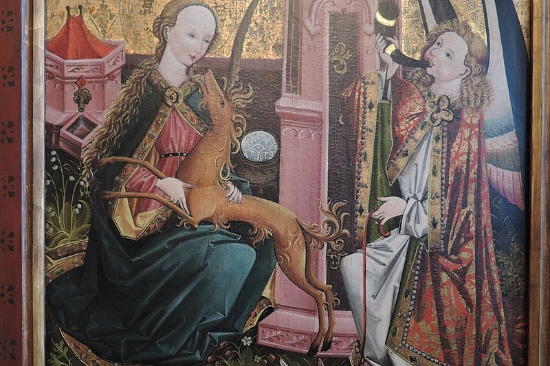 V pozdím středověku se nakrátko objevuje ještě specifické téma Zvěstování jako lov na jednorožce, které symbolizuje neposkvrněné početí Panny Marie. Námět se objevuje až do Tridentského koncilu, který ho již dále „nedoporučuje“. U nás se jedná o ojedinělý motiv. Krásným příkladem je Oltář z Jeníkova (kol 1460). Zkrocený jednorožec (symbol Krista ) spočívá v klíně Panny Marie. Archanděl Gabriel je zobrazen jako lovec troubící na roh se 4 psíky představující ctnosti: Pravdu (Veritas), Pokoj (Pax), Spravedlnost (Iustitia) a Milosrdenství (Misericordia). Netypické je umístění archanděla, většinou přichází k Marii zleva a zde je opak. V pravé horní části nám opět nechybí holubice Ducha svatého a Bůh Otec. Máme zde typické symboly čistoty a neposkvrněnosti: